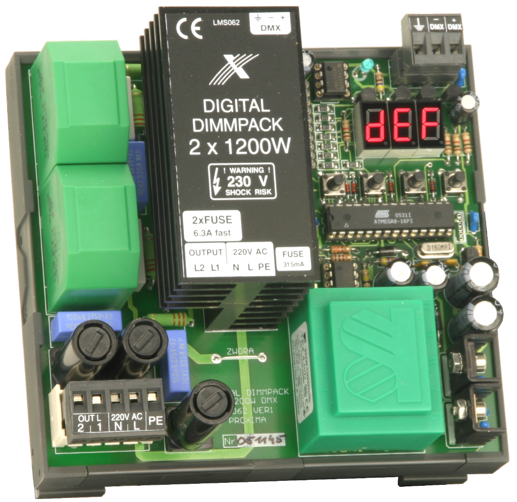 built-in noise suppression circuit, control lights for input signals and fuse blow - control input: DMX-512