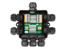 PX838 is a device that allows you to connect many LED lamps to one power supply and DMX controller.It is adapted to connect 4 lamps. If all output connectors are not occupied in the LED splitter, jumpers should be used between the pins of the DMX control signal.